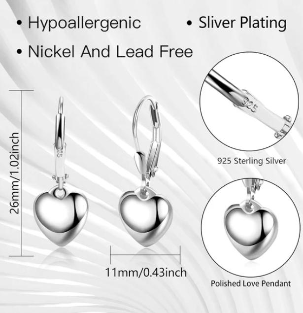 925 Sterling Silver Heart Dangle Earrings for Women Silver Dangle Earrings Hypoallergenic Love Heart Dangle Drop Earrings for Gifts #OWK007