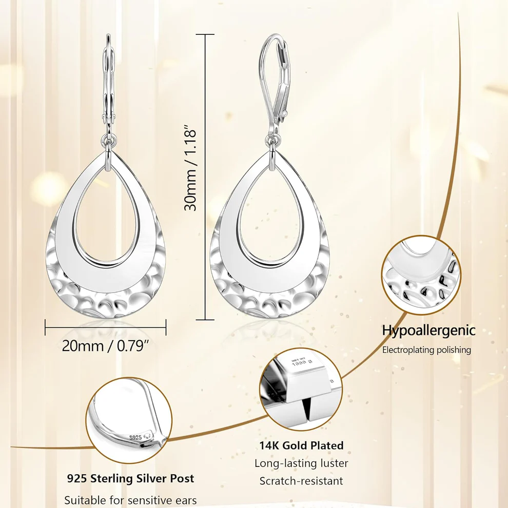 925 Sterling Silver Teardrop Dangle Earrings for Women Hammered Layer Drop Dangle Earrings #OWK008